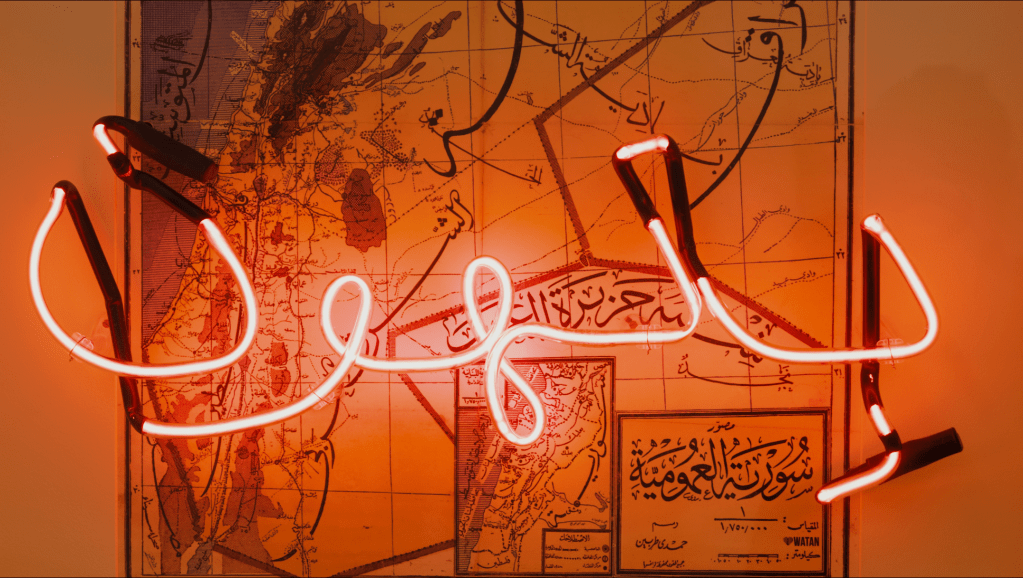 Artist: Jude Abu Zaineh, Bithoon (with map of Palestine), 2021.
